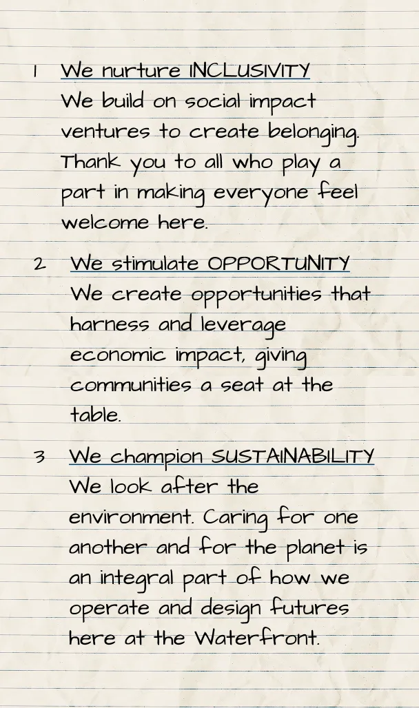 Every day, Waterfrontiers (our staff, our tenants and our partners) collaborate to uphold these promises in meaningful ways. This year, we’re shining the spotlight on their stories, to celebrate the catalysts for positive change throughout our neighbourhood. Each Waterfront Change maker is an inspiring example of the power of ripple effects for good and you can explore their stories in this ongoing library.