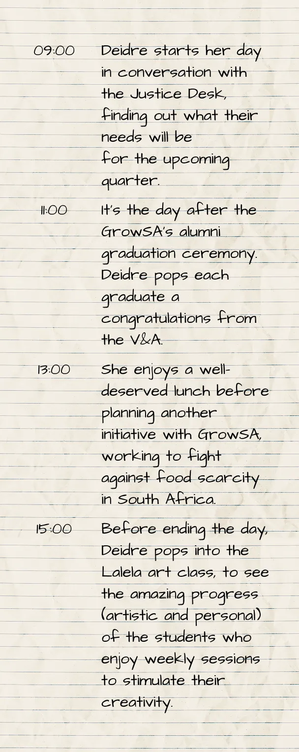 “Every day we ask ourselves: how can we connect deserving organisations with access to the resources they need to make a difference. It’s the V&A’s way and I’m proud to dedicate myself to seeing the impact reach those who really need it.”