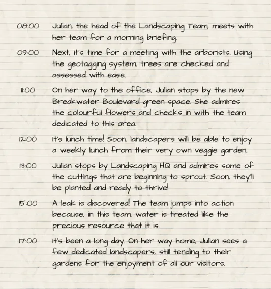 “You’ll often see us on site even before the early birds and sometimes you’ll find us here with the night owls. That’s because we know that we are making a difference, a meaningful difference, to people’s wellbeing, to nature’s wellbeing, to the wellbeing of the whole neighbourhood. That’s what keeps us motivated, come rain or shine. We hope you enjoy the gardens we create. They are made just for you!”