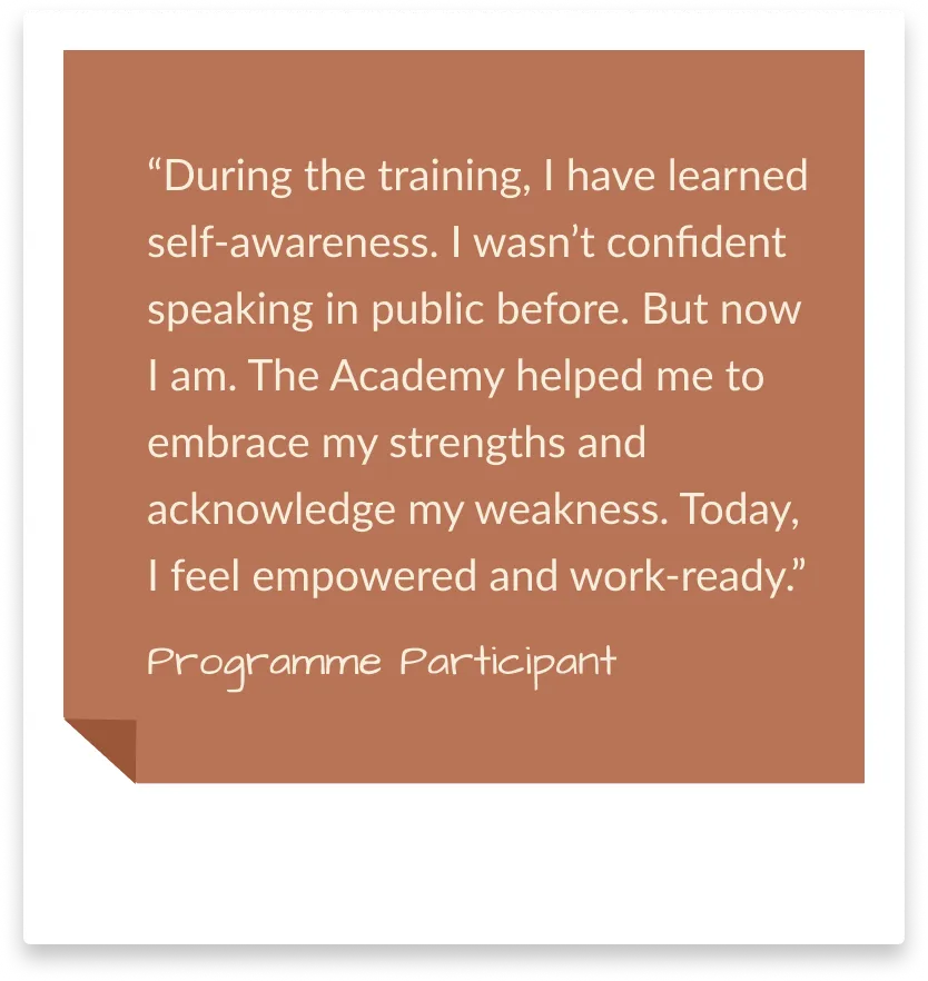 At the Academy, we aim to connect underserved youth with opportunities within the customer experience sector. But we do not just throw them into the deep end. We help them develop self-confidence and on-the-job soft skills, followed by months in an internship with one of our local businesses. After this, we help them find a long-term placement. It’s about helping talented young people to kickstart their careers, one graduate at a time.